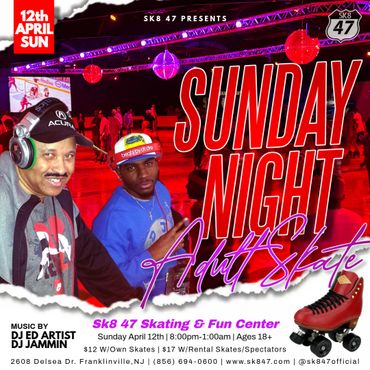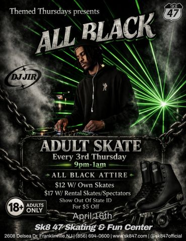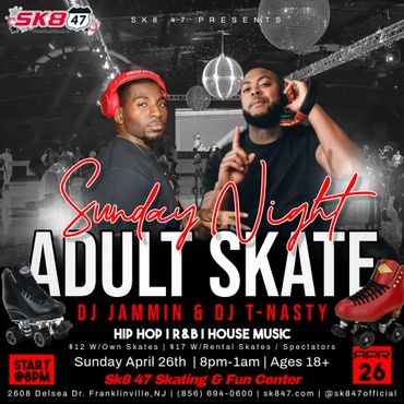 **Adult Parties**: Start at 10 PM, and skating resumes after we briefly sweep the floor.